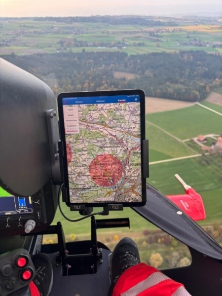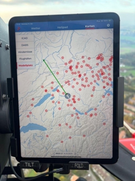 Modellflugplätze im Rega Helikoptercockpit sichtbar